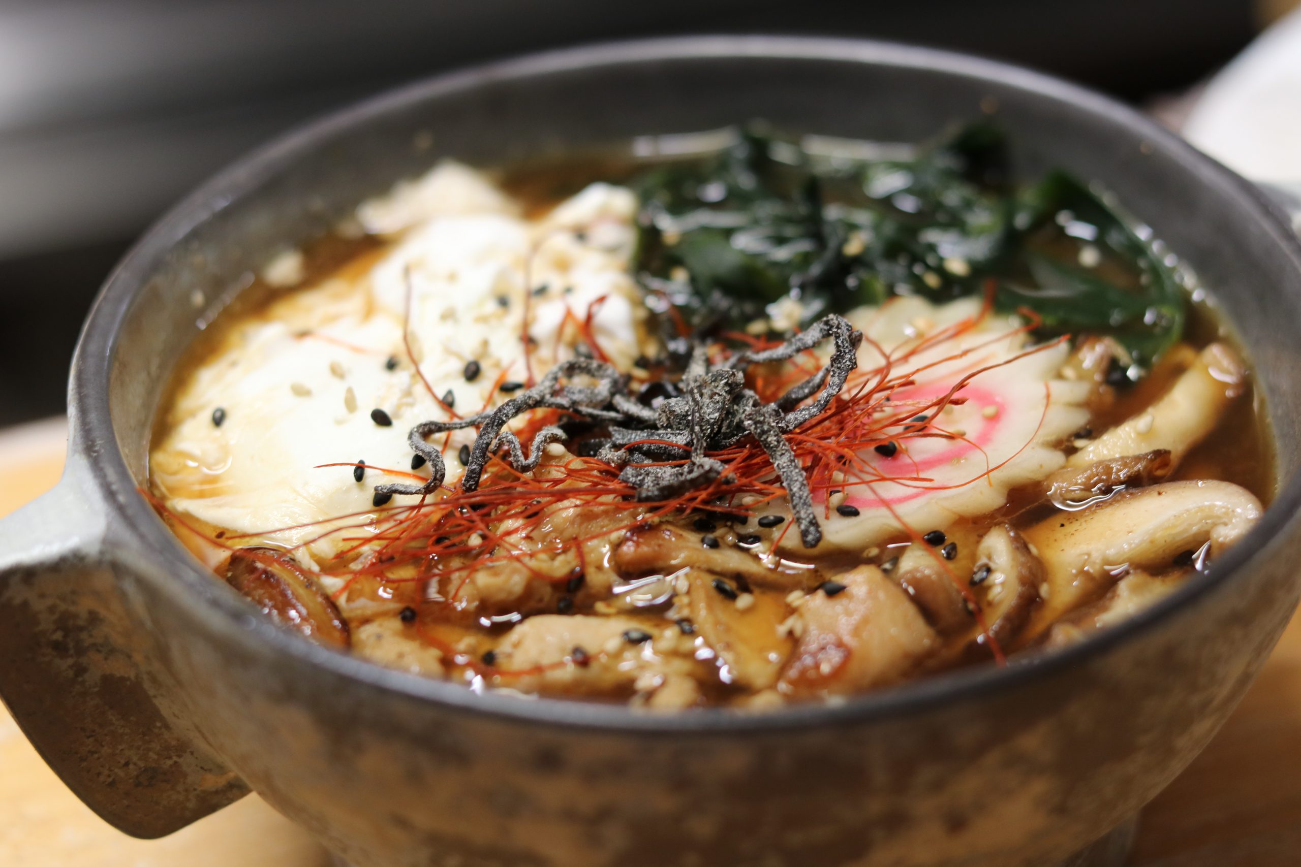 Chushu marinated in teriyakiHomemade misonarutoNoodlesShitakes sautéed with hoisinSoy marinated eggWakame