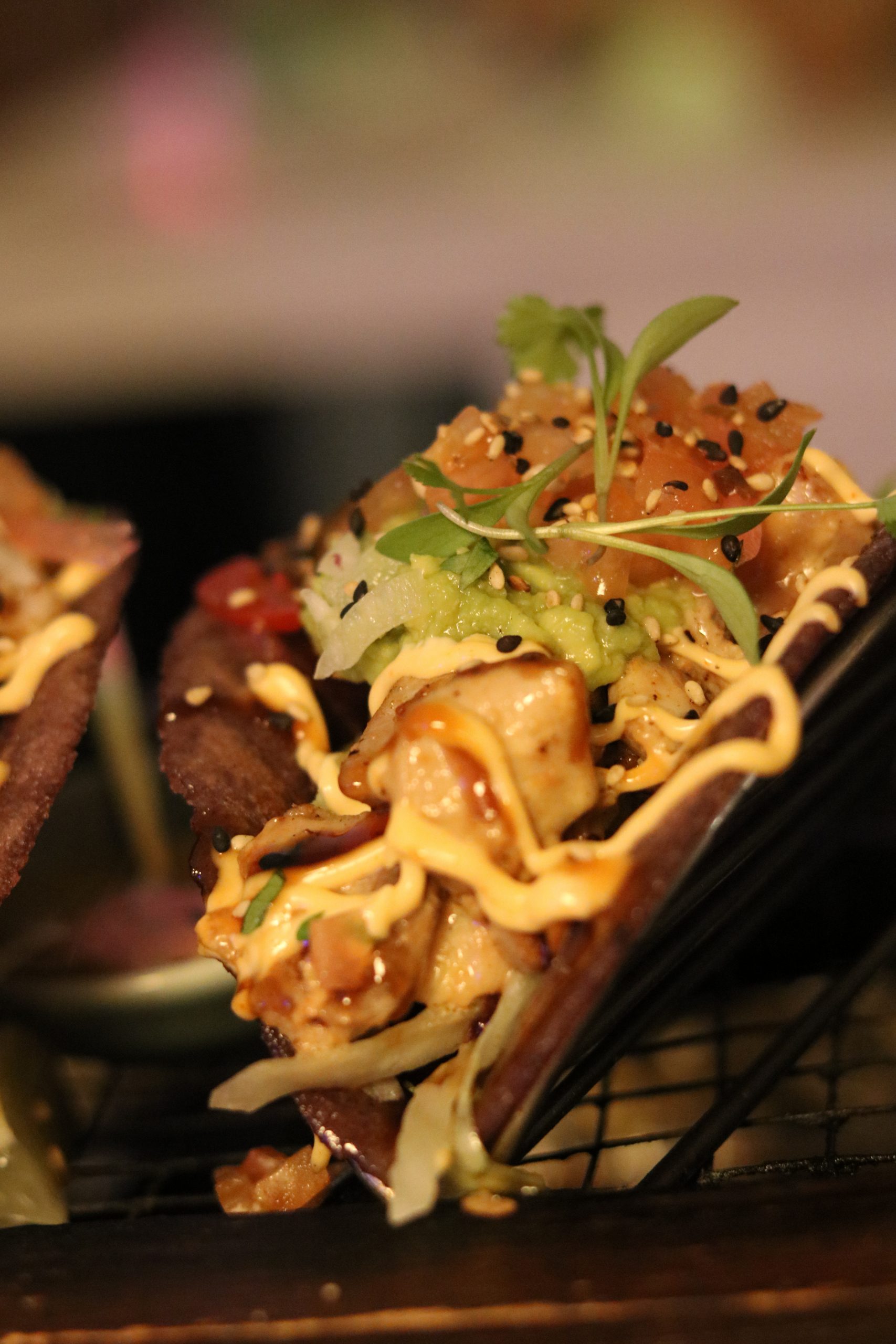 Corn tortillaGuacamolePico de GalloSpicy-mayoTeriyaki sauceWok chicken thigh